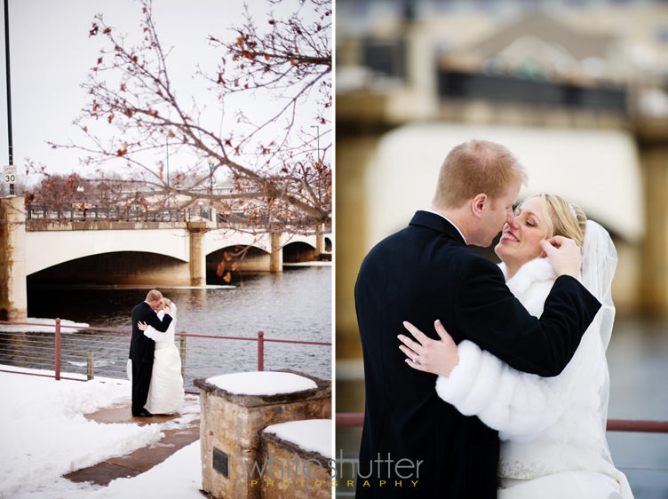 so char & jeff live near milwaukee, wisconsin. their wedding was in geneva, illinois. we’re based in rockford, illinois. and our first meeting was at the starbucks in beloit, wisconsin. i’m not sure how, but at the end of the day, we all managed to get back to the right cities. char & jeff were hoping for snow back in february for their wedding and snow they got. their wedding was a day or two after one of our big blizzards this year. his groomsmen were shoveling all morning to open up paths for guests to move around on. winter wonderland is what the herrington inn became for their wedding. the pump house at the herrington was magically changed from a magically ceremony venue to a beautiful reception hall in the matter of minutes. well, we think it was just minutes because we had the privilege of being outside in the snow following the ceremony spending time with char & jeff. they were troopers. it was snowy and chilly (you can tell by their wedding parties’ expressions). but we definitely managed to have fun in the sun… if you have been craving the changing of the seasons, just remember, the cold weather is right around the corner. enjoy.
